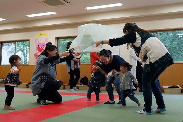1歳児をお持ちのお母さん、お子さんを連れて遊びにいらっしゃいませんか? のはら幼稚園の広い畳のお部屋(柔道場)で、のびのびと転がったり、手作りおもちゃで遊んだり、絵本に親しんだり……みんなで楽しいひとときを過ごしましょう。